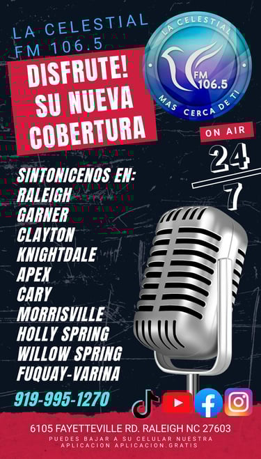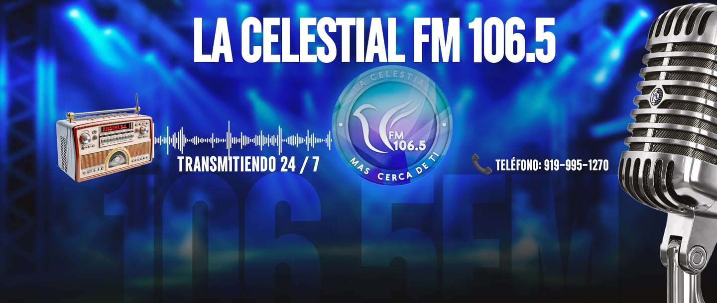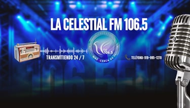 Te damos una cordial bienvenida a la Celestial FM 106.5, un oasis espiritual, una radio para todas las familias, te brindamos un mensaje de esperanza atravéz de cada canción y el mensaje de la cruz atravéz de nuestras predicaciones con amor. Nuestra emisora cristiana está dedicada a compartir la verdad de la Palabra de Dios y a brindar inspiración en cada momento del día. La Celestial FM 106.5 es un estanque milagroso mencionado en las Escrituras, es el símbolo de nuestra misión: llevar sanidad y renovación a través de las ondas radiales. Aquí encontrarás melodías que tocan el corazón y te llevan a la presencia de Dios.